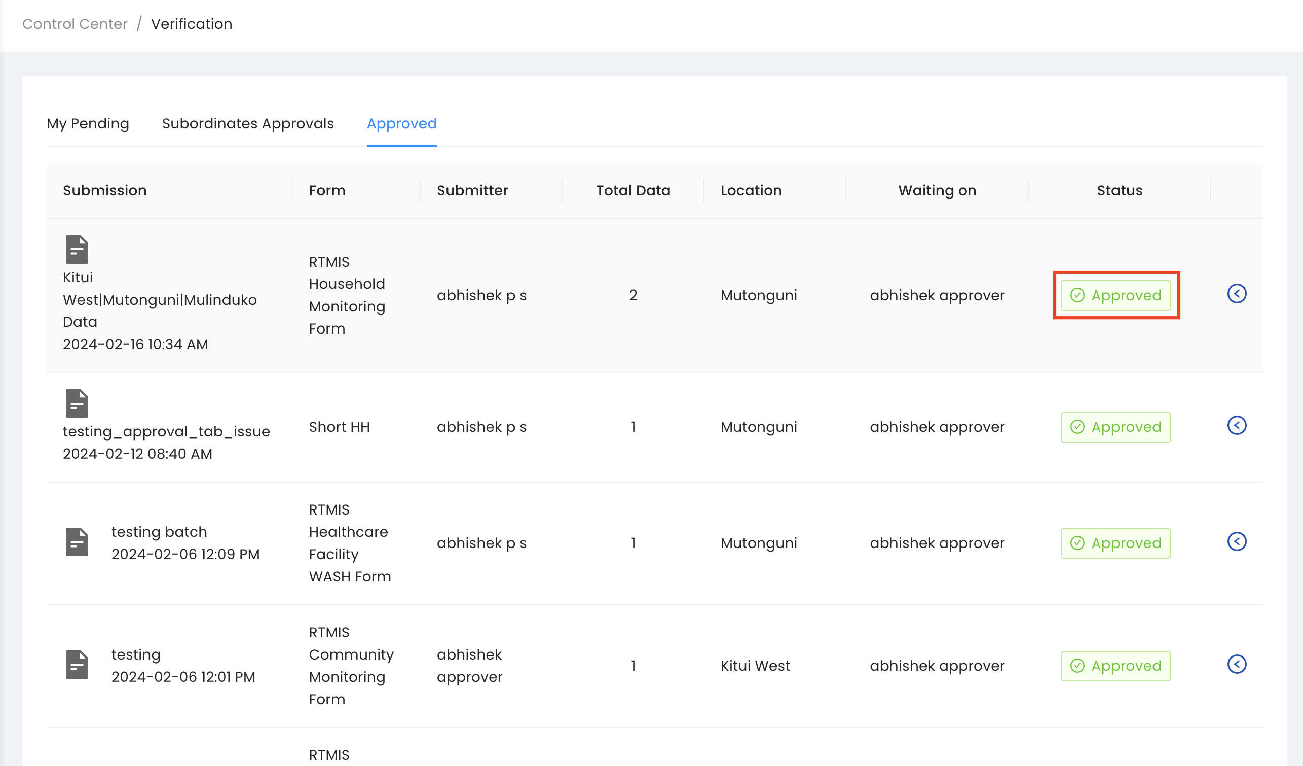 Once the data is is approved it will move to the approved tab.